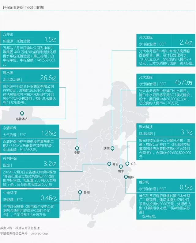 导读:2015年,环保市场一片向好,环保上市企业的项目中标情况火热,其中12月中标情况尤为突出,其中固废与水作为最热门领域,在8月到12月的统计期内共占据行业约四分之三的项目。通过对企业布局的整理统计,我们能够发觉2015下半年环保行业的几个现象。